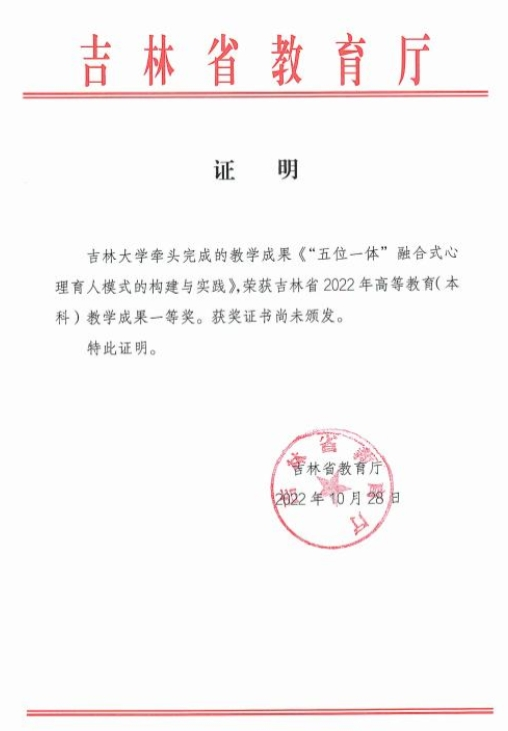 1.成果获吉林省2022年高等教育(本科)教学成果一等奖