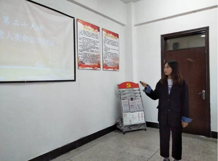 习近平总书记指出,青年兴则国家兴,青年强则国家强。青年人是国家的未来,是民族的希望,是改革开放的主力军,肩负着历史的重任和人民的期望。为贯彻新时代中国特色社会主义思想,把握青年脉搏,向青年输送优秀的精神文化,吉林师范大学博达学院管理系学生党支部在党员活动室开展学习《习近平新时代中国特色社会主义思想三十讲》的活动。参加本次活动的是管理系学生党支部宣传委员梁婧、组织委员姜莹莹、教师党员张洪泽以及应知应会宣讲团成员。本次宣讲人是17级市场营销专业高思文,本次宣讲的内容是——构建人类命运共同体。