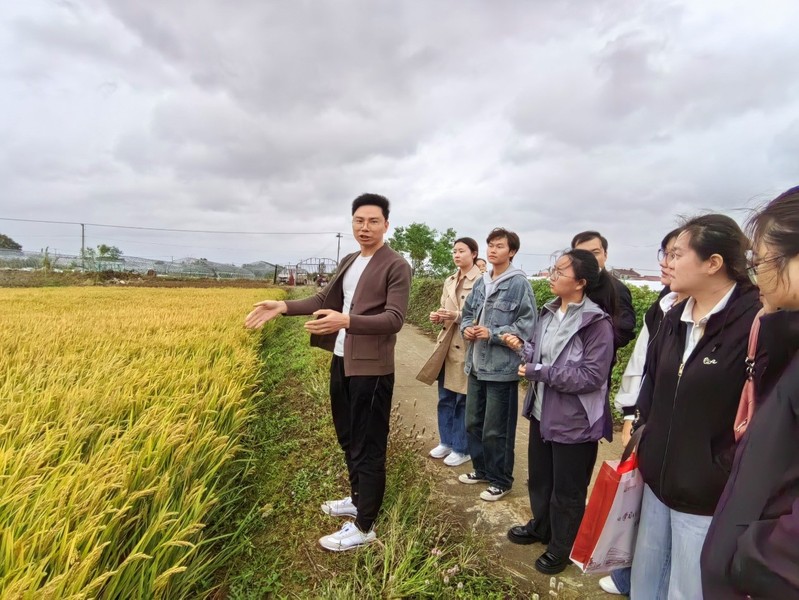 时下,正是稻谷成熟收割的好时节。学院青年教师、民建会员吴珂在他的水稻试验田开展现场教学。他分析了水稻绿色丰产增效的重要瓶颈,重点介绍了绿色智能肥料技术途径,通过分析试验数据、构建施肥模型、优化施肥参数、科学制定区域,以轻简化配肥施肥的栽培模式,力争在水稻的应用成效上实现节本增效润田。金灿灿的稻谷传递着”绿色“耕作的灵动音符,“田间课堂”粘泥土、带露珠,生态环境学院的师生们真切感受科技兴农的必要性和粮食安全的重要性,愿以实际行动守牢生态防线,科技牵手农业,助力乡村振兴。