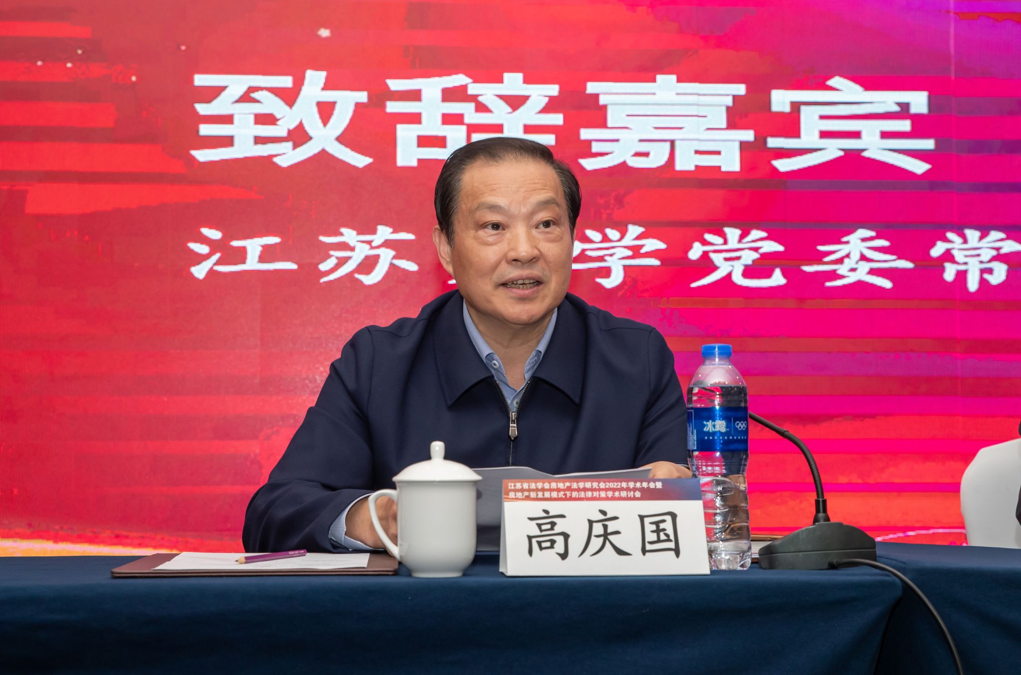 高庆国向与会代表介绍了江苏大学的基本情况。他指出,大会的召开是学习贯彻党的二十大精神的重要举措和积极回应。研究会要深入贯彻落实党中央关于新发展模式下房地产工作的相关要求,坚持“房住不炒”的政策总基调,贯彻新发展理念,促进行业高质量发展。