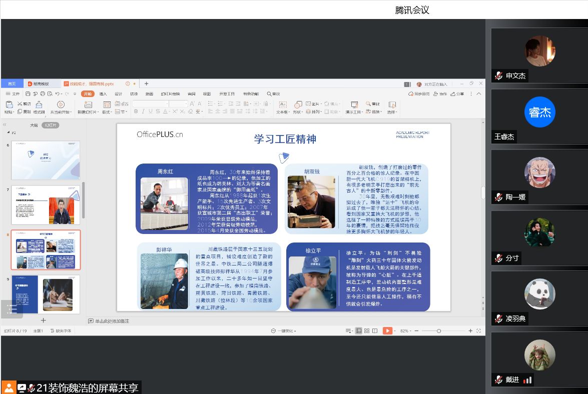 21装饰工程一二班的党员教师霍婧婷立足工匠精神,以“大国工匠”周东红、胡双钱、彭祥华、徐立平等人的先进事迹为切入点,通过深入浅出的讲解,在同学们的心中种下了一颗“工匠精神”的种子,引导同学们形成正确的劳动价值观和良好的劳动品质,激励同学们成长为敬业、精益、专注、创新的新时代优秀建设者,成长为能够担当民族复兴大任的时代新人。