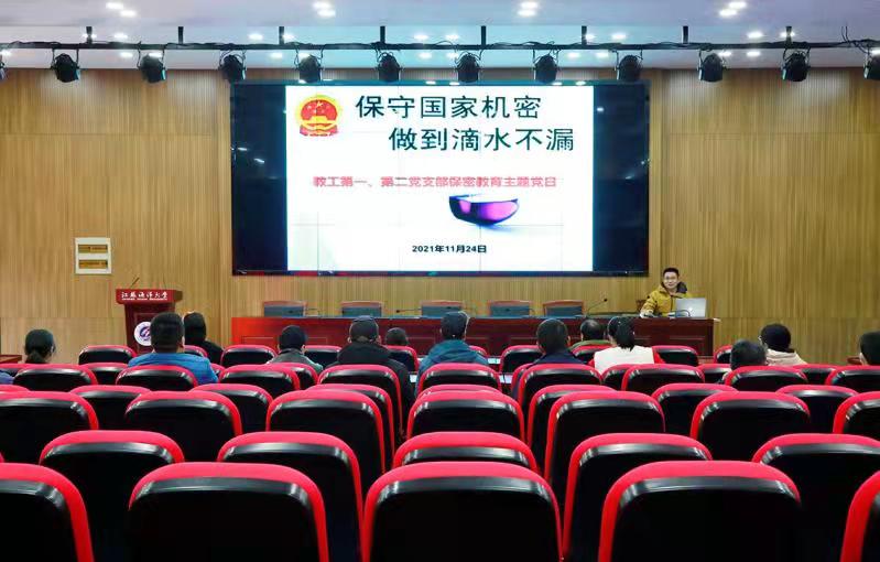 保守国家秘密是《宪法》规定的每一个公民应尽的义务,是国家法律法规规定的涉密人员必须承担的责任,保密工作在维护国家安全和利益中起着十分重要的作用。为提高党支部人员的保密意识,营造学法、知法、守法的良好环境,教工第一、第二党支部于11月24日在敦行楼211报告厅开展“保守国家秘密做到滴水不漏”的《保密法》学习主题党日活动。