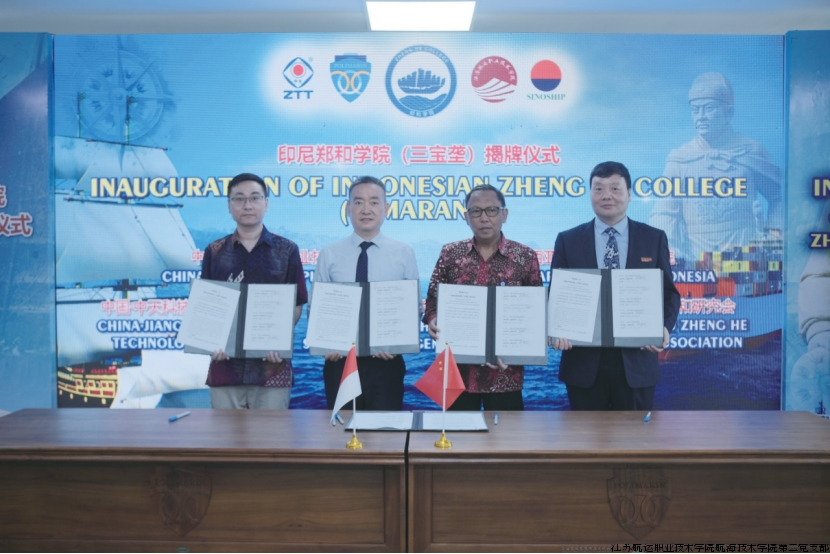 3. 随企出海,共建印尼郑和学院。江苏航运学院牵头建设的印尼郑和学院(三宝垄)(简称印尼郑和学院),汇集两国航海类院校、中国航运企业、江苏省郑和研究会三方资源,计划通过3至5 年建设,组建名师名匠、跨境混编教师教学创新团队,联合开发专业标准、课程标准、教学资源,建成航海类专业高端技能人才数字化学习云中心和智改数转国际平台,以及国际化航海职业教育师资培训示范基地;开展航海技术、轮机工程技术专业教学改革试点,推进“中文+航海技能”融合发展,举办现代学徒制国际班,在境外开展学历教育,培养国际化航海高端技术技能人才;传承和弘扬郑和文化,建立中印尼郑和文化研究和传承基地,成为开展境外学历教育的国际合作办学样板,树立“郑和计划”境外办学品牌。
