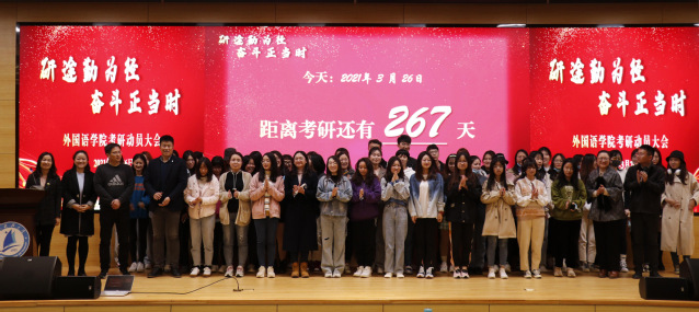 姚双良书记首先发表动员讲话。姚书记分享了对学历层次的理解,并对选择考研的原因、目标高校选择、备考建议等方面展开分析,鼓励同学们树立正确的考研观,做好计划,持之以恒,通过自身努力站上更高的平台。接着,英语系主任韩菁菁老师发言表示,当前考研竞争激烈,学院老师是同学们坚强的后盾,会一直给同学们强有力的支持。2018级钱晨作为学生代表发言,考研是一条道阻且长的路,呼吁大家应无所畏惧地向前冲,勇敢相信自己,让心底的考研愿望成为现实。张霞副书记总结讲话中表示,学院将举办一系列活动助力学生考研,通过强化考研组织工作体系、提供考研晚自习教室等保障体系,更好为考研学生提供服务。最后,2018级全体励志考研学生和老师上台进行考研倒计时并合影留念,全场老师同学一起为2018级考研学生加油。