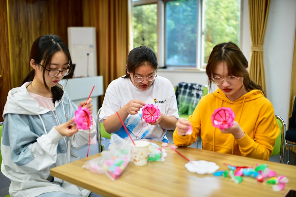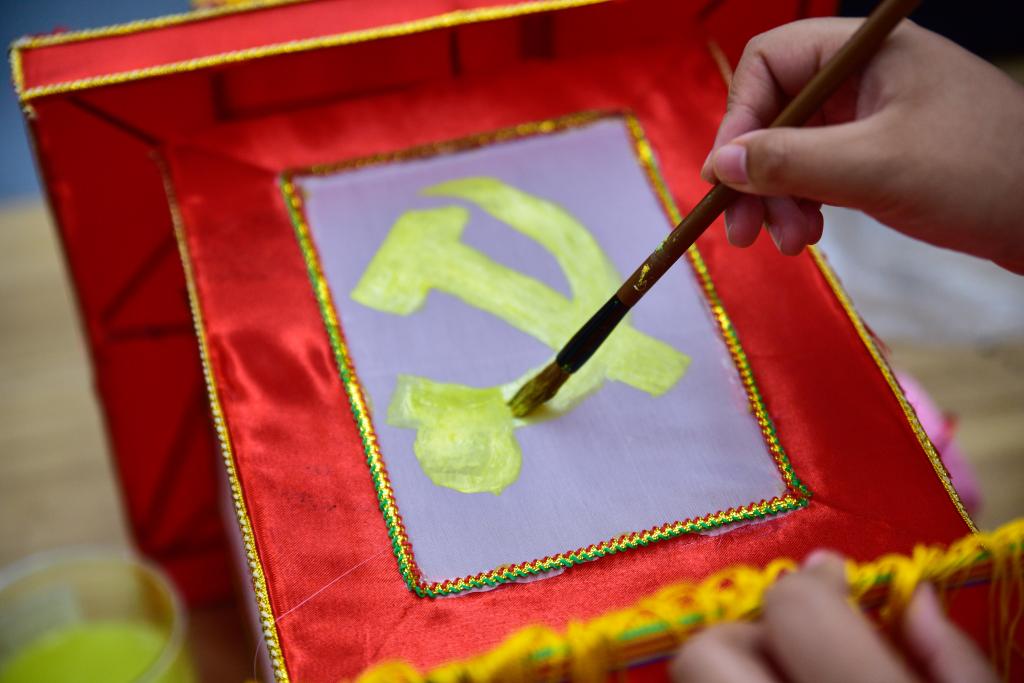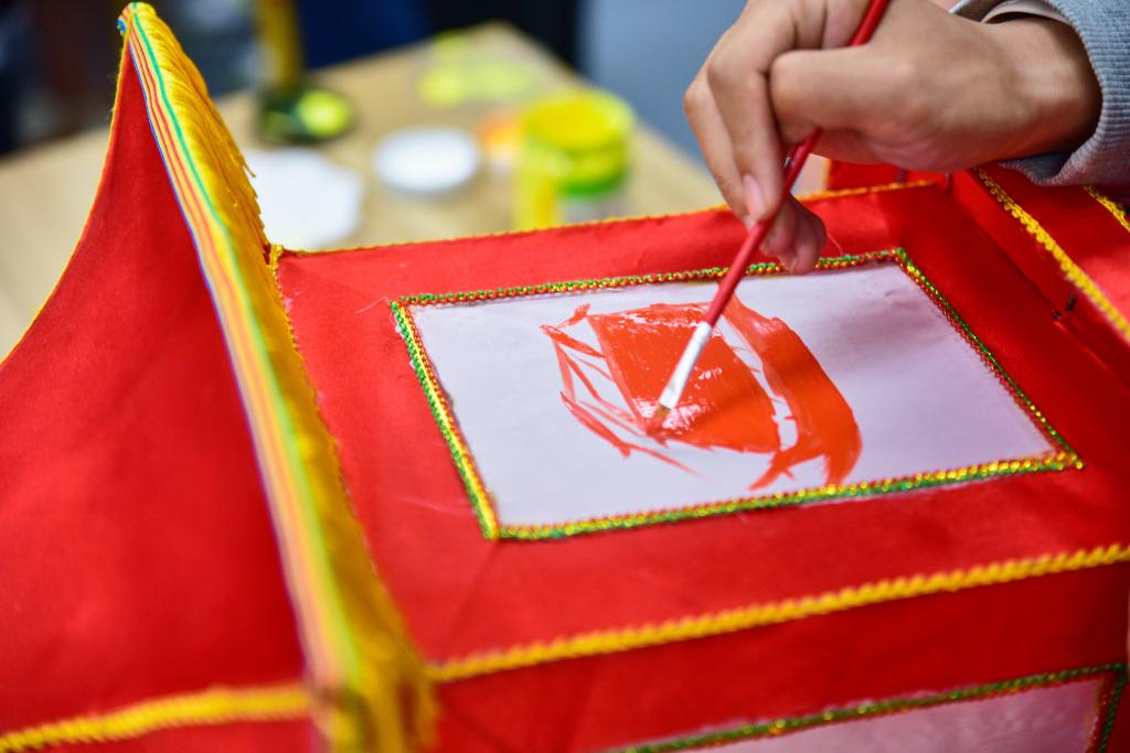 活动开始,陈柏华先生向同学们介绍了国家非物质文化遗产保护的重要性与秦淮灯彩的来源与发展,并讲解了花灯的制作工艺与制作方法。随后,在陈柏华先生的指导下,同学们用分发的素材进行花灯的绘图与制作,有的用白色乳胶粘花瓣和叶子制作莲花灯,有的用国画毛笔在灯上绘制红船,党徽,有的写下“不忘初心,牢记使命”、“为人民服务”等,同学们在完成自己花灯作品的同时感受了手工技艺的文化内涵,领略了非遗艺术的独特魅力。