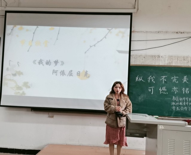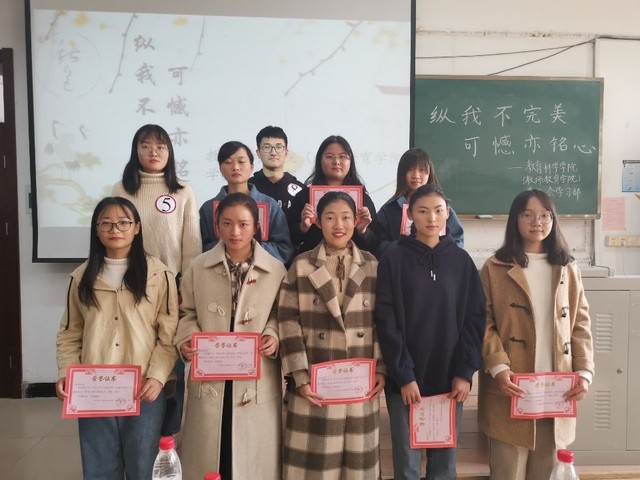 为丰富大一新生的学生校园生活,锻炼学生演讲能力,2019年11月16日,教育科学学院(教师教育学院)在云龙校区成功举办“纵我不完美,可撼亦铭心”演讲比赛。出席本次活动的评委有校自管会外联部部长王佳玲,院学生会副主席钱富、陈青,通网部副部长柏煜佳,宣传部副部长万磊。教育学院学生一支部成员参与本次比赛,负责筹备等工作。