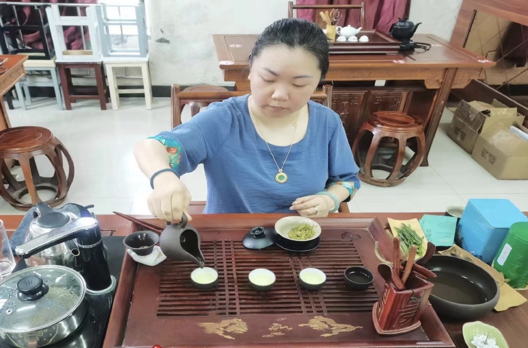 茶艺师胡欣薇老师展示泡茶方法和技艺