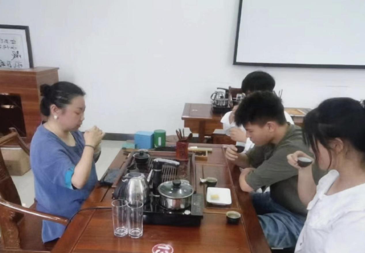 教师现场展示盖碗冲泡、玻璃杯冲泡技法,同学们现场学习演练茶艺礼仪和茶艺规范动作,取茶、泡茶、倒茶、分茶,体味茶的色味形韵。