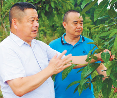 蒋乙嘉(左)向村民讲解黄桷树的管护。叶 星摄(人民视觉)