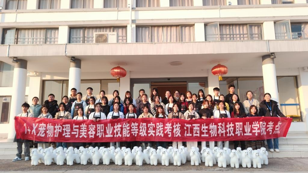 为深入贯彻《国家职业教育改革实施方案》精神,全面落实1+X证书试点工作,进一步提升学生的专业素养和实践动手能力,动物科学系联合名将宠美(北京)教育有限公司于12月27日在生物科技园实训基地进行了1+X宠物护理与美容职业等级证书(初级)的考核,共有2022级宠物养护与驯导专业40名学生参加。