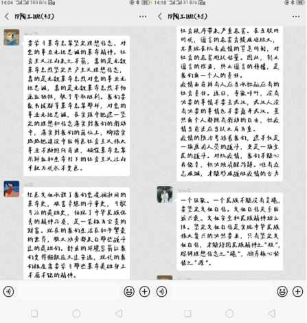 19陶工1班董思进同学说:“中国传统文化赋予了红色独特的精神内涵。在中国传统文化里,热烈、鲜艳的红色代表了吉祥与喜庆,代表了不顾一切勇于追求的热烈,更代表了坚定活泼的热情。也许是历史的机缘巧合,也许是历史的必然,红色同中国革命和社会主义现代化建设结下了深厚的不解之缘,在中国一辈辈英雄儿女追求民族独立,国家富强的壮丽实践中形成了具有独特文化内容和魅力的红色文化。红色文化所承载的红色精神也必将继续激励一代又一代中华儿女为理想和信仰拼搏奋斗,为中华民族伟大复兴的中国梦续写更加壮丽的红色画卷。”