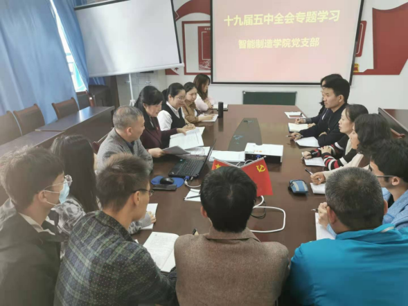 11月3日下午,智能制造学院党支部组织开展专题学习会,深入学习贯彻党的十九届五中全会精神。会议由熊玲鸿书记主持,智能制造学院全体党员参加。