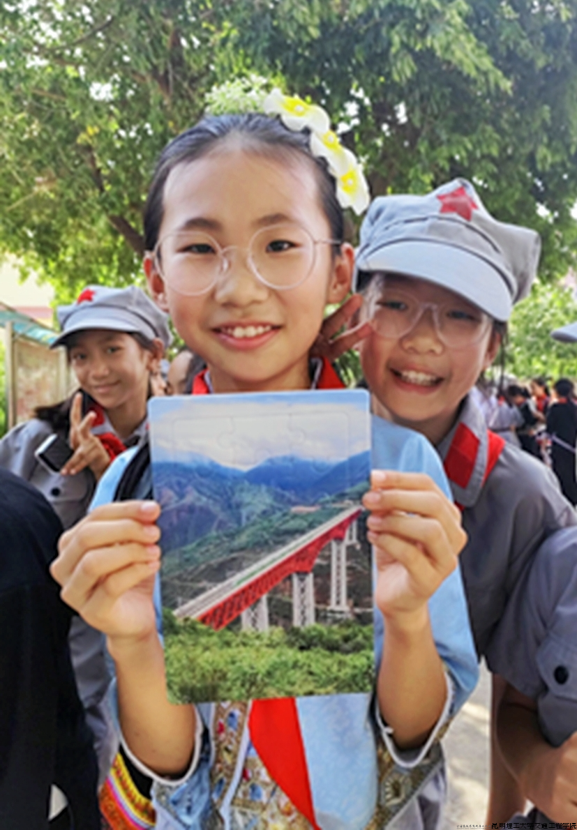当宣讲团成员提问“你今天最大的收获是什么?”时,率先完成“元江特大桥拼图挑战”的傣族学生苏欣妍说,中老铁路通车了,元江和世界更近了,自己第一次感受到家乡建设和国家发展联系那么紧密,国家越来越强大,作为中国人她很自豪,以后要努力学习科学文化知识,长大后建设美丽元江。