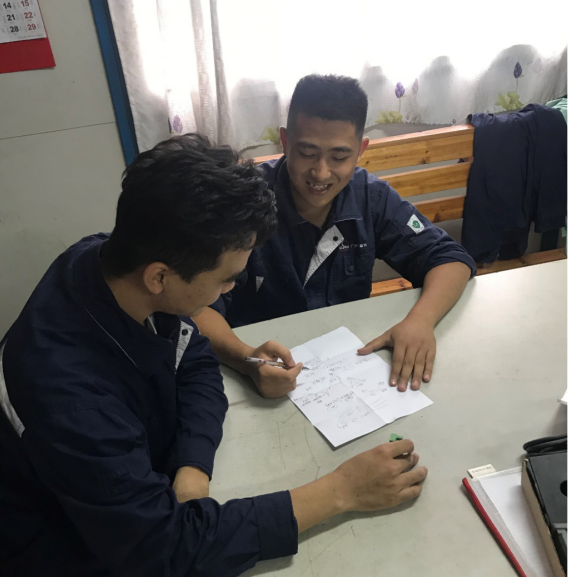 罗定职业技术学院机电工程系两名教师张良井、陈俊钦在广州石化建安公司的企业实践过程中,于8月11日随机探访电气维修公司试验班,并和试验班的同学进行了友好的交流:了解实习学生的实习进度、实习效果、实习遇到的问题等;并就同学们所关注的问题一一记录、解答。