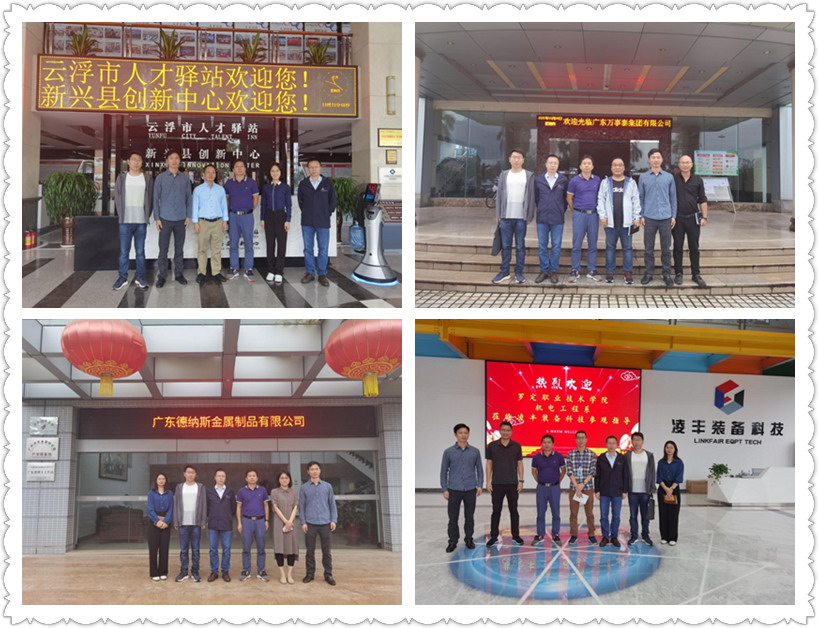 10月29日至30日,机电工程系党总支书记、系主任黎一强带领工业机器人技术专业团队老师奔赴云浮、佛山地区的企业及院校开展为期两天的专业调研活动。为了将专业建设和云浮地区的产业相结合,黎一强一行走访了新兴不锈钢产业地基。在云浮市人才驿站的粟益主任和余荧敏副主任的陪同下,黎一强一行参观了新兴县创新中心、万事泰集团、德纳斯和凌丰集团,并深入企业生产一线进行了调研及座谈,并与当地企业达成校企合作的意愿。