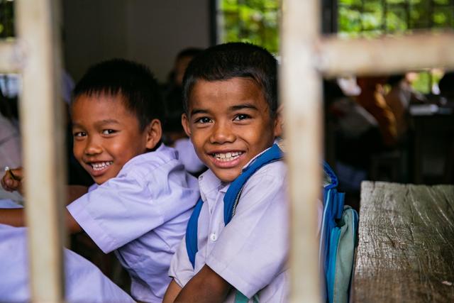 △2020年9月15日,在老挝万象市版索村,学生在中国帮助建设的学校中学习。