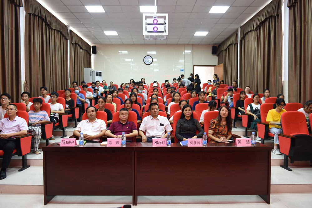 本期“南江思政讲坛”由马克思主义学院主办,在第六会议室学术报告厅举行,讲坛由马克思主义学院办公室主任周琼主持。出席本期讲坛的领导和师生有:学校党委副书记、纪委书记邓永钊,副校长莫秋婵,组织宣传统战部、党政办公室、校团委等相关负责人和马克思主义学院全体教师、各系的部分教师和学生共90多人参加。