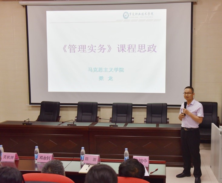 本期讲坛展示的梁龙老师,以其讲授的《管理实务》专业课程为例,从课程思政教学改革背景、《管理实务》课程思政的原则与策略、《管理实务》课程思政方案与实施、《管理实务》课程思政心得体会四个方面向大家展示了开展课程思政的全过程。“课程思政的关键是师德建设,教师是落实立德树人根本任务的责任主体和实施主体,抓好师德师风建设,打造一支高素质教师队伍,是推动课程思政实施的首要条件”。“以践行社会主义核心价值观为主要内容,结合专业特点分类施策,构建专业课职业道德体系,形成专业课与思政教育紧密结合、同行同向的育人格局,将职业道德融入专业教育全过程”。“坚持知识传授、能力培养和价值引领相统一的原则,深度发掘各类课程所蕴含的思想政治教育元素和所承载的思想政治教育功能,融入课堂教学各环节,融入教育教学的全过程,使各类课程与思想政治理论课同向同行,形成协同效应,实现全员全过程全方位育人”。梁龙老师的《管理实务》课程设计,通过深入挖掘专业课程中蕴含的思想政治教育资源元素,有机融入家国情怀、法治意识、社会责任、人文精神、仁爱之心等思政元素,润物无声地让学生在学习专业知识的同时将个人成长与祖国前途命运紧密相连。