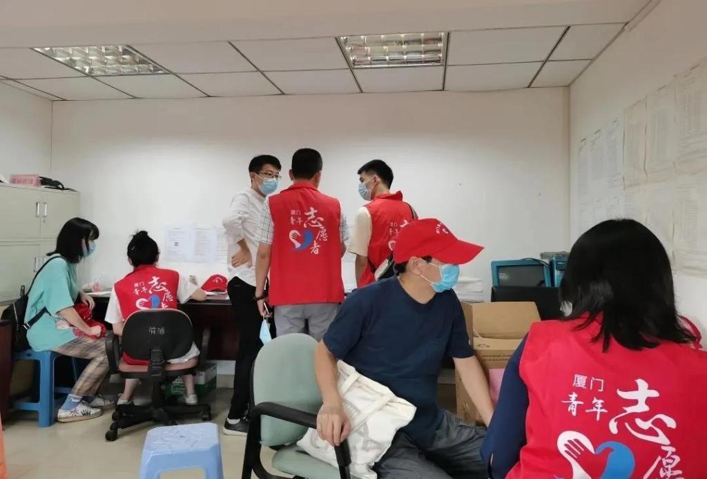 由团厦门市委机关、厦门市青少年宫干部组成的青年志愿服务队,走进莲前街道前埔社区,协助抗疫工作。他们主要负责前埔社区的便民服务热线,24小时在线上为民排忧解难,包括核酸检测安排、社区何时解禁、目前的最新政策、孕产妇和急诊病人的就医问题以及社区封闭期间的快递外卖接收、煤气更换等问题。