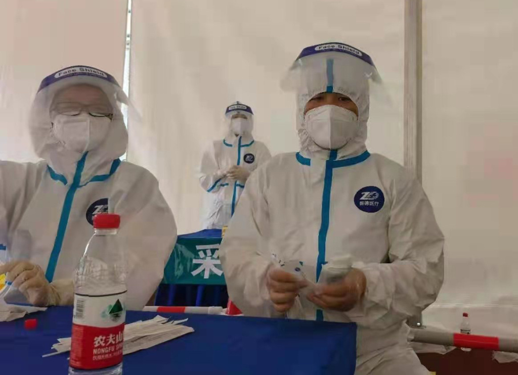 2021年8月,包启农又主动申请成为奥体中心核酸检测应急演练现场的一名志愿者。严实的防护服一穿就是几个小时,全身湿透的包启农没有一句抱怨。