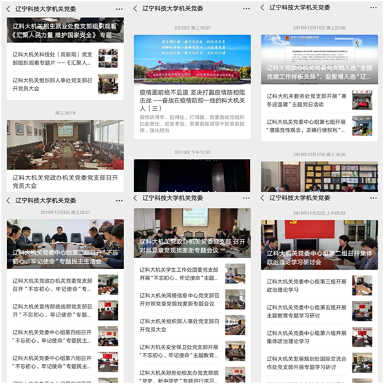 辽宁科技大学机关党政办机关党委党支部围绕支部建设、主题教育等开展了一系列学习活动,我们将支部的全国高校思想政治工作网、探索创新和建设成果,通过机关党委微信平台、党政办公室网站“支部建设”平台和“学习强国”交流群等展示,切实高质高效地发挥了新媒体平台的作用。