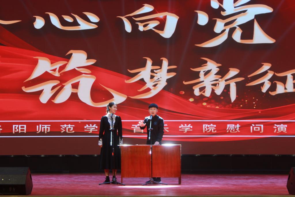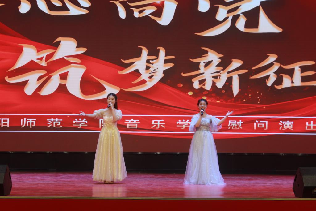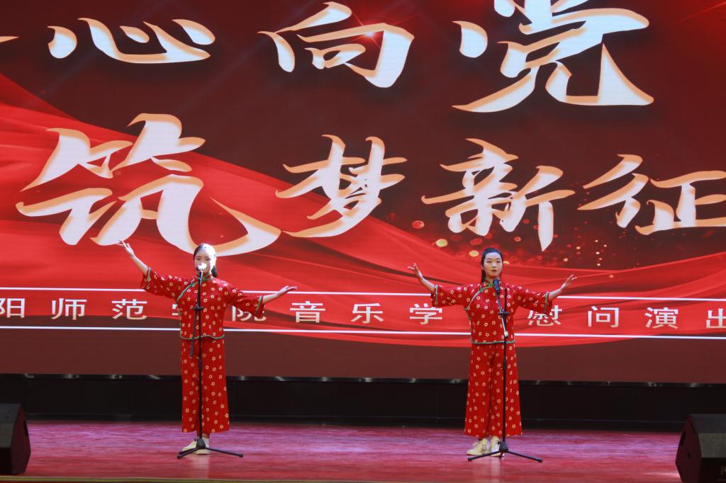 晚上,我院师生在部队大礼堂为官兵送上了一场以“青春心向党,筑梦新征程”为主题的慰问演出。部队首长、全体官兵及军属,我院党委书记尚玉卿一同兴致勃勃地观看了演出。