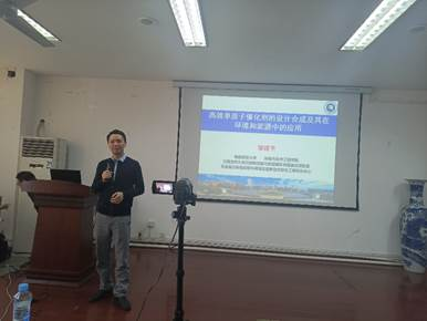 (化学化工学院 付拯江、杨文利、伊学政讯) 为贯彻落实习近平总书记在谈治国理政中关于实施科教兴国、人才强国的重要论述,发动全院师生跟踪学术领域最新前沿,开拓科研思路、激发科研创新, 在“双一流建设”中“作示范、勇争先”,10月13日,在化学化工学院党委、 “双带头人”支部书记工作室组织下,教职工第一党支部承办了第二期“赣鄱青年学者论坛”暨“担当作为学先进、争创佳绩做先锋”主题党日活动。本次活动邀请南昌航空大学研究生院院长邹建平教授和江西理工大学叶恒云教授分别作了“高效单原子催化剂的可控合成及其在环境和能源中的应用”、“稀土分子钙钛矿铁电体的设计合成”学术报告。化学化工学院党委舒涛书记、工作室及教工党支部党员代表、部分青年教师、研究生代表共100余人参加了本次论坛交流本次活动。化学化工学院院长蔡琥教授主持了本次学术活动。