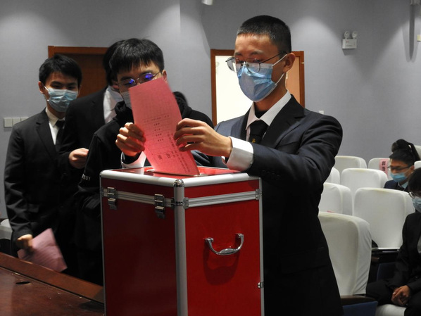 大会圆满完成各项既定任务,通过民主投票选举产生了怀楚天等3名第二届学生会主席团成员、王一帆等3名第二届研究生会主席团成员;沙卜蕊等7名第二届学生会委员会委员,张珠宇等7名第二届研究生会委员会委员。