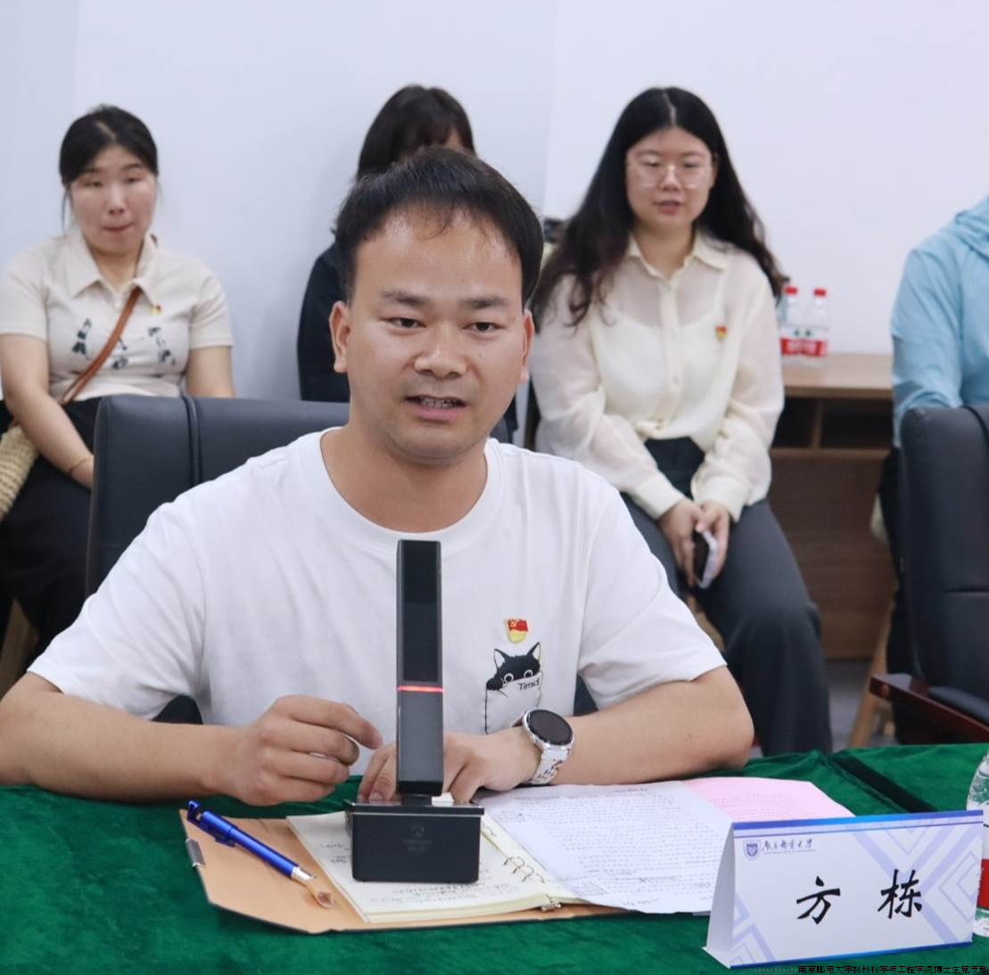 在座谈交流环节,支部书记方栋从博士支部建设的角度汇报了三点想法:一是要坚持以习近平总书记关于科技创新的重要指示为根本遵循,以黄维院士创立的“SCIENCE”文化为科学指引,聚焦“四个面向”,紧扣国家新能源、新材料科技创新需求,继续深耕细作,不断向科学技术广度和深度进军,奋力攻关光电领域“卡脖子”难题,激励带动广大研究生牢固树立科技自强意识,坚定科技报国信心。二是要继续加强同学院留学归国青年教师的沟通交流,定期邀请他们同硕士、博士研究生开展座谈交流、茶话会、科研“故事汇”等,团结凝聚广大党外知识分子、留学归国青年,大力弘扬留学报国的光荣传统。三是要加强对支部在海外留学/访学的流动党员的教育管理和引导关怀,定期进行线上谈心谈话,了解掌握他们的思想生活近况,引导他们在外讲好中国故事,树立良好中国形象,并注重熏陶留学归国精神,激励他们以报效祖国、服务人民为行动自觉。方栋表示,作为科研创新的青年力量,研究生要自觉担负起责任和使命,勇挑“科研”大梁。
