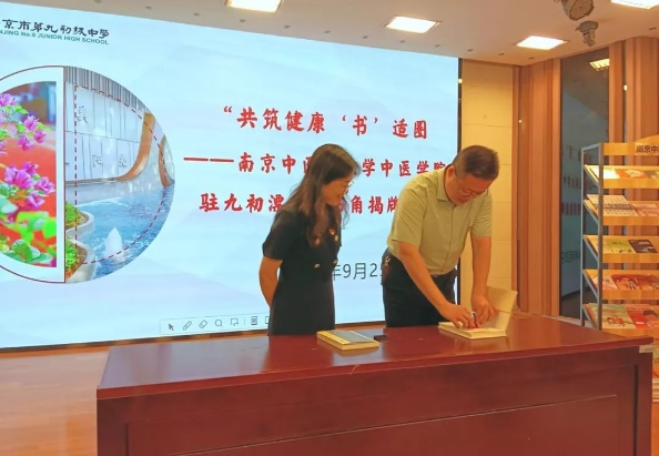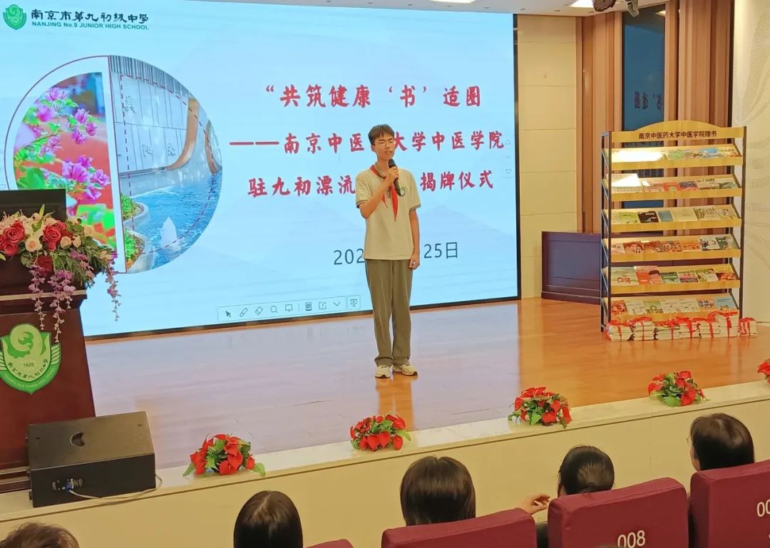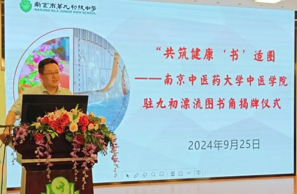 南京市第九初级中学党支部书记、校长王艳飞、副校长焦志华,我校学生工作处副处长孟亚平,我院副院长谷鑫、中医学院教工第二党支部书记、中医文史教研室主任张继,中医各家学说教研室主任周俊兵,以及支部党员骨干朱秋虹、张舒晨等出席活动。活动由第九初级中学校务委员万莉主持。