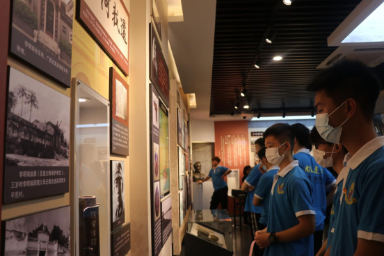 (图为:同学们参观李明瑞、韦拔群纪念馆的革命事迹)