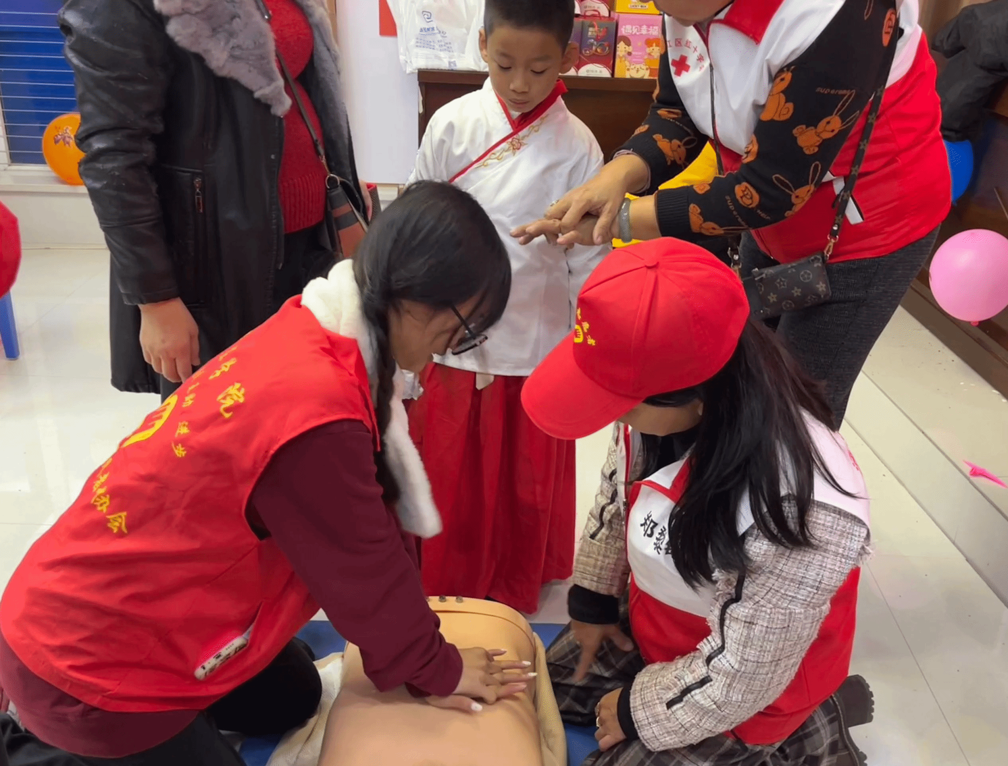 图为活动现场,志愿者们协助社区开展活动。