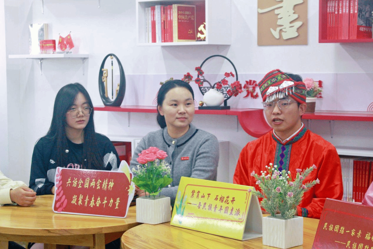 图为党建书屋活动现场,各民族学生代表分享感言。 王静萍/摄
