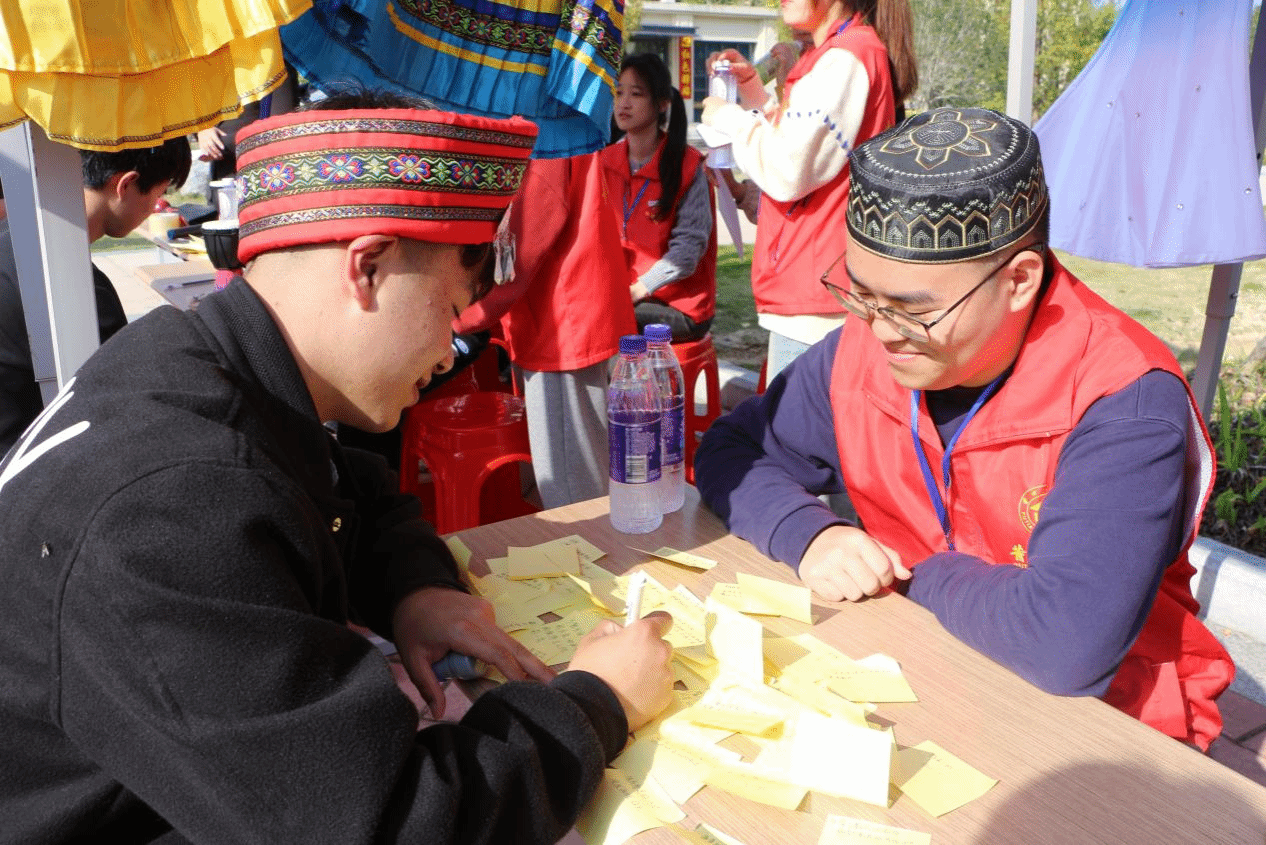 图为此次民族文化节现场,各民族学子亲手写下祝福语。 郑梨斌/摄