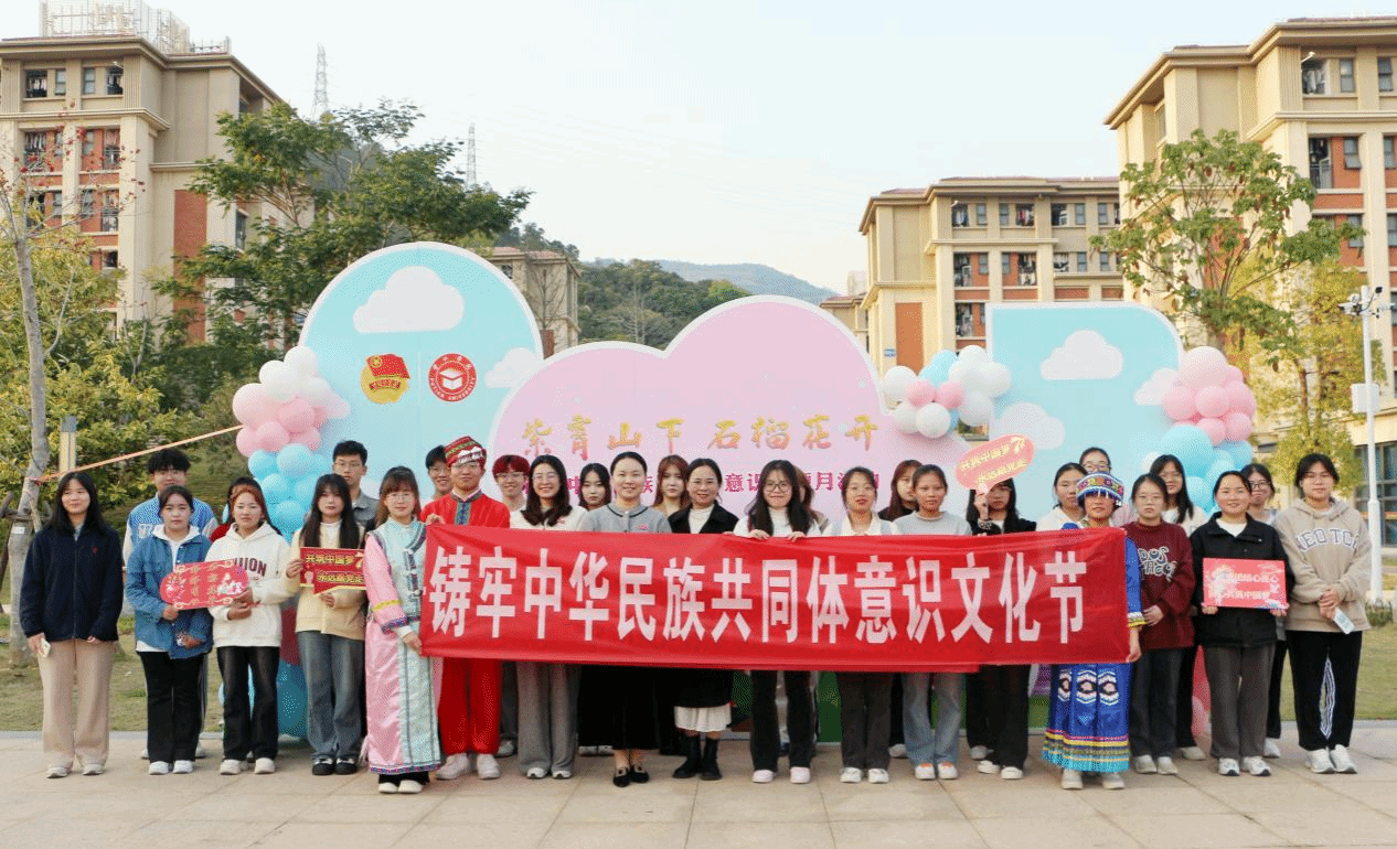 图为此次民族文化节现场,师生合影留念。 郑梨斌/摄