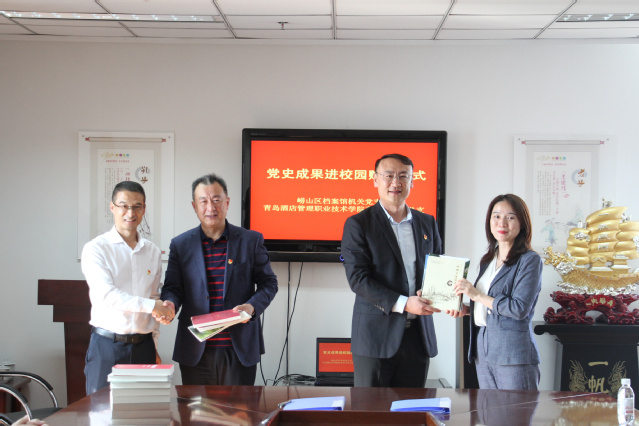 签约仪式上,崂山区档案局副局长臧先锋介绍了崂山区档案馆基本情况,希望双方积极推动资源共享、优势互补,依托政府社会资源,助力教育事业发展。烹饪学院党总支书记李文武表示,将充分发挥烹饪学院大师匠心领航工作室平台作用,通过多元化合作形式,传承工匠精神,培育劳动情怀,提高职业教育质量。随后,双方签署党建共建协议,崂山区档案馆向烹饪学院党总支赠送党史学习教育系列图书。