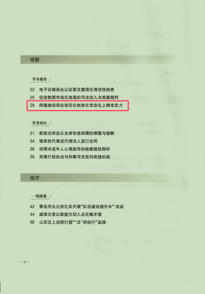 近日,中央政法委机关报《法治日报》主办的半月刊《法治参考》发表学术文章《师德建设须在规范化制度化常态化上精准发力》,点赞了齐鲁理工学院师德师风建设特色做法。