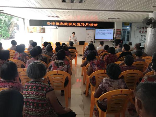 2019年8月10日上午,在晋江安海镇前蔡村村委会会议室,泉州师范学院教育科学学院副教授、泉州市首届刺桐科学传播学者许松芽作《传承优良家风,建设幸福家庭》的报告。报告由该村老年协会会长蔡来会主持。安海镇妇联主席林新红旁听了报告。前蔡村近100名老人参与活动。该讲座是2019年泉州市“家庭教育公益大讲堂”的系列活动,也是安海镇家教家风宣传月活动。此次活动由泉州市妇联、泉州市教育局等单位共同主办,泉州师范学院教科院教工第一党支部承办。