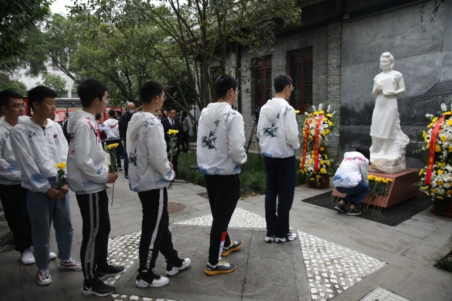 当天上午,学校还同时在江安校区和华西校区举行了向川大英烈碑和革命英烈毛英才像敬献花篮仪式。