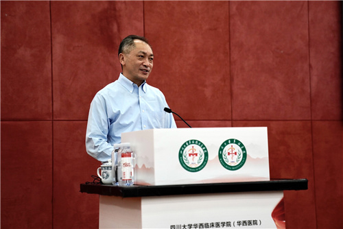 培训会上,四川大学常务副校长许唯临以《全面打造一流华西医学》为主题,从“华西临床医学院学科状况与贡献”“学科建设情况分析”“面向2035全面打造一流华西医学”三个方面向与会人员做了详细报告。