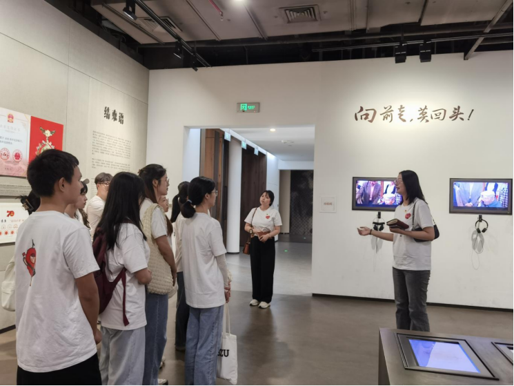 观展结束后,支部书记韩蔼婷老师和党务秘书胡诗涵老师给同学们带来“弘扬袁庚精神”主题微党课。韩老师用袁庚先生常说的一句话“向前走,莫回头”勉励同学们以他为榜样,将小我融入大我,做好人生规划,用行动和专业知识实现自身价值,将初心写在逐梦路上,接好改革开放的接力棒。胡老师则借用习近平总书记在庆祝中国共产主义青年团成立100周年大会上的讲话“奋斗是青春最亮丽的底色,行动是青年最有效的磨砺。有责任有担当,青春才会闪光”,鼓励同学们善用深圳改革开放前沿地资源,走进博物馆纪念馆,参观改革历史旧址,在深圳这片改革热土继续探索改革开放的春天故事和宝贵经验,用实际行动践行袁庚精神。