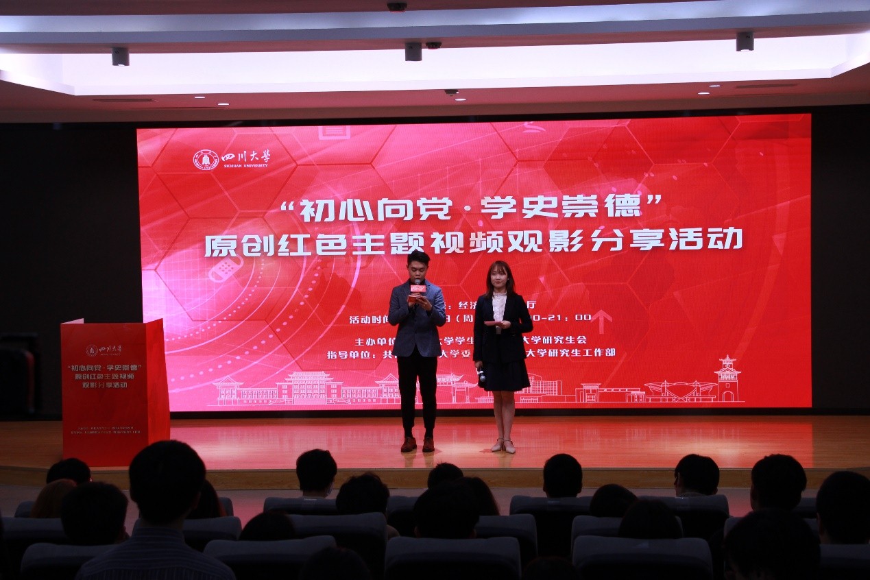 4月16日,“初心向党·学史崇德”原创红色主题视频观影分享活动在四川大学望江校区举行进行首场展映。活动由校学生会、校研究生会组织,校团委、研究生工作部指导,通过学生团队原创红色主题视频展播的形式讲述党的百年光辉历程、伟大成就和宝贵经验,打造全息式、沉浸式的党史学习教育体验。现场200多名参与同学跟随视频创作者的脚步,走进了他们的红色实践旅程。