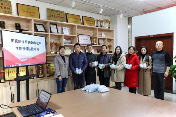 会议结束后,影视制作系向全体教职工分发了毕业学生向系部捐献的防疫口罩。