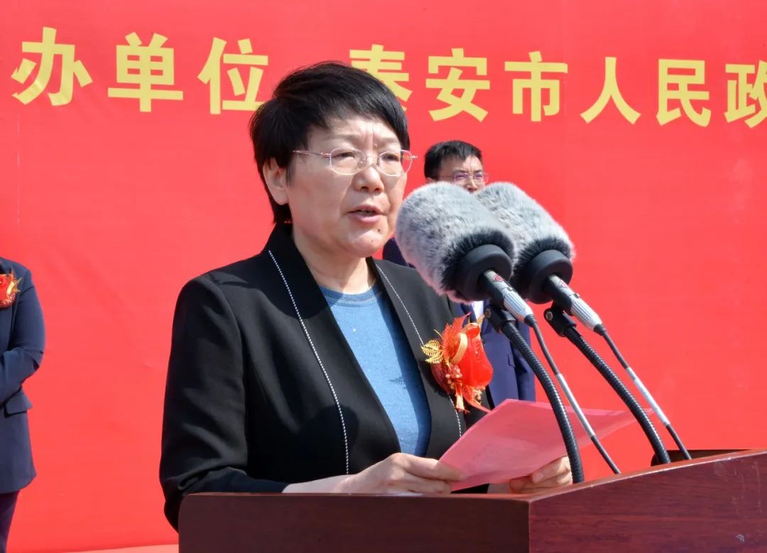 王爱新在仪式上讲话,对项目顺利开工表示祝贺,向为项目筹建付出辛勤劳动的工作人员表示问候。她指出,市委、市政府认真贯彻落实习近平总书记关于职业教育发展的重要指示批示精神,把发展职业教育放在重要位置,大力实施创新驱动、科教兴泰和人才强市战略,积极构建现代职业教育体系,加快培养更多高素质技术技能人才和能工巧匠。泰安市大型仿真实训基地项目是助力新型工业化强市建设重点项目,由山东服装职业学院承建,着眼建成“新型工业化强市建设的技术高地和面向中小微企业的技术服务中心、培养紧缺技能人才的实践中心”,为“大众创业、万众创新”提供技术技能培训服务,为新型工业化强市建设输入更多技术人才。希望市直各有关部门、泰山区、服装职业学院和施工单位按照建成精品工程、样板工程的要求,精心组织,严把质量,高标准推进项目建设,争取早建成、早投用、早见效。要创新项目管理运营模式,吸引更多企事业单位参与到实训基地中来,推动实现共建共享。