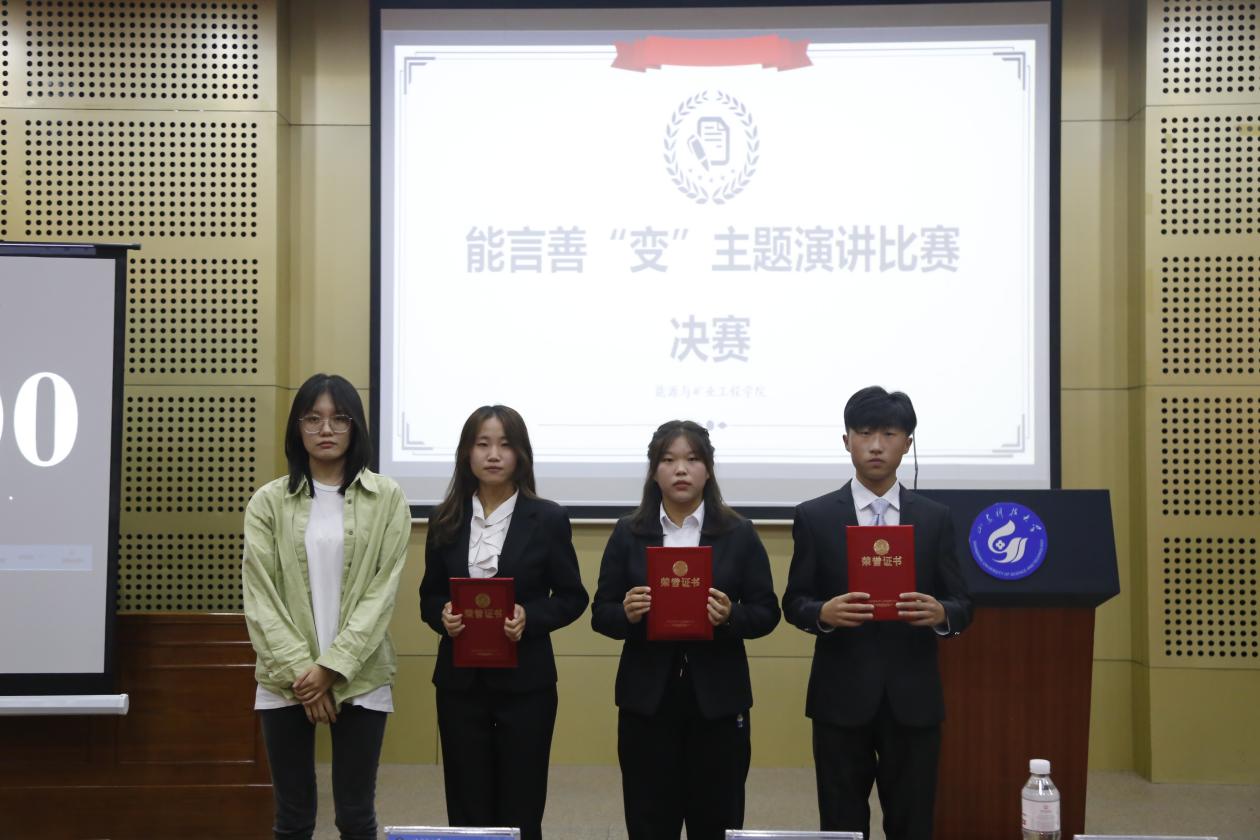 11月26日,由能源学院团委主办,能源学院学生会办公室承办的第二届能言善“变”主题演讲比赛决赛于J4-101报告厅举办。能源学院团委书记周尚涛,辅导员肖宜辉、刘雨池、学生会主席团成员及数百名本科生参加。 比赛以能言善“变”为主题,旨在鼓励选手们勇于创新,作品不拘泥于形式,可通过相声、小品等多种形式变化呈现,让演讲变得更加生动具体,让人耳目一新。 决赛分为两个阶段。第一阶段,参赛选手们同台竞技,尽显风采。他们以“中华民族千秋伟业,百年恰是风华正茂”“不忘初心,牢记使命”“百年薪火相传,奋力点燃时代”为主题,结合自身经历和实际感受,用慷慨激昂、饱含深情的演讲,抒发对党和国家的感激和热爱之情,表达了民族自豪感以及报效祖国的坚定决心。有的选手从中国共产党的发展历程为切入点,结合自身对共产党发展过程中遇到的磨难与取得的成就的理解进行讲解论述;有的选手着眼于当下国家发展,以中国共产党取得的辉煌成就为线索,充分表达中国共产党领导的本质特征和优越性。一段段真诚的发言,一个个感人的故事,一次次真情的吐露,让观众为之触动。第二阶段,选手随机抽取图片进行解析,每一张图片都拥有其深层次的内涵立意,选手们冷静分析,并在规定时间内准确的表达出图片内涵的意义。比赛全程,参赛选手们富有感染力的演讲和对未知问题的冷静应对赢得了现场观众的阵阵掌声。 经过紧张激烈角逐,工业2021-2班刘梦丹、采矿2021-6班姜嘉乐斩获一等奖,工业2021-2班柳小琦、工业2021-2班常晓婷、工业2021-1班张中宝获得二等奖,采矿2021-1班宗雍康、采矿2021-5班徐嘉嵘、工业2021-1班韩霄宇、采矿2021-4班曹欣奥获得三等奖。