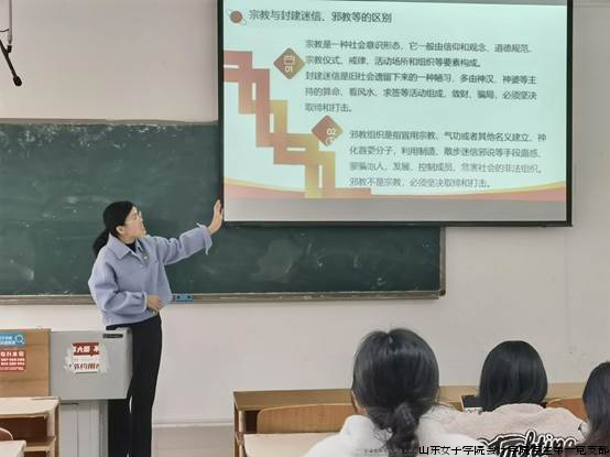 尹书记以“学习宗教政策法规,树立正确宗教观”为题,结合自身学习思考和工作实践,讲述了什么是宗教、宗教与封建迷信、邪教组织的区别、党的宗教工作基本方针,旗帜鲜明地指出我们国家实行教育与宗教相分离,任何组织和个人不得在学校进行宗教活动。她结合实际案例让大学生对党的宗教工作政策有了更清晰、更深刻地认识。最后她强调大学生应保持高度政治警惕性,自觉树立社会主义核心价值观,学习先进文化知识,用马克思主义思想武装头脑,树立正确的宗教观,自觉抵御非法宗教渗透;学生党员、学生干部要主动发挥榜样引领作用,积极发挥作用,共同营造积极、和谐、健康的校园文化氛围;要将自己所学报效祖国、服务社会,为实现中华民族伟大复兴贡献自己的力量。