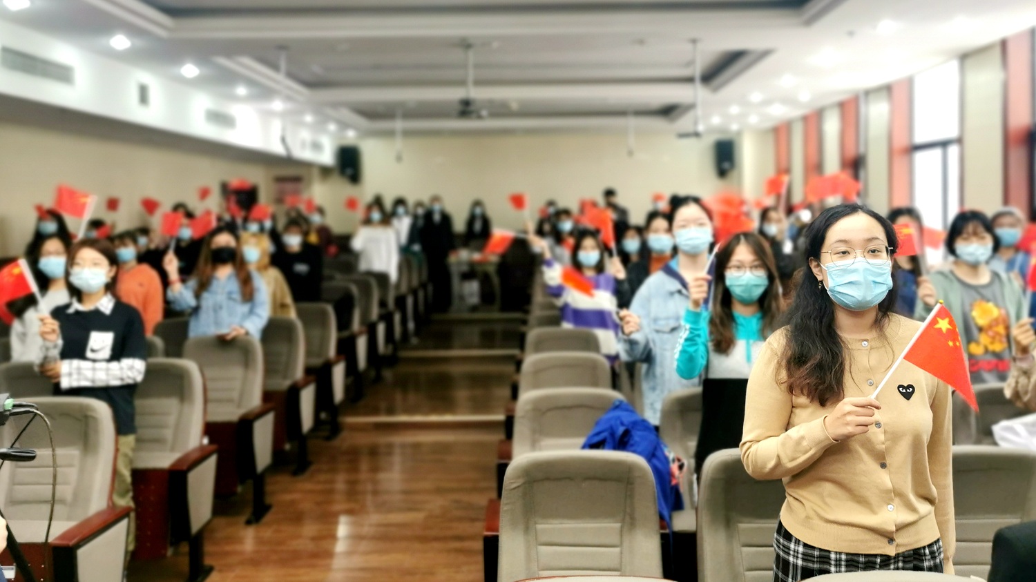 茶话会还邀请张啊媛和赵辰圆两位初教校友来到现场,分享她们初为人师的滋味和听会感想。两位学姐博士、硕士毕业后分别成为大学老师和小学老师,但都实现了师者初心,表示在职业生涯起步阶段,会不断反思和提升自我,时刻提醒自己不忘初心、砥砺前行。最后,主持人陈源老师希望同学们叩问自己的初心,明确奋斗目标,并不断滋养初心,实现初心,在生涯规划上择己所爱、择己所长、择世所需,把自己的梦和家国的梦结合起来,一起创造更多不平凡的家国奇迹、生命精彩。茶话会在全体起立挥舞国旗、齐唱《国家》的歌声中结束。