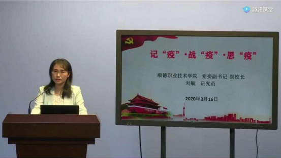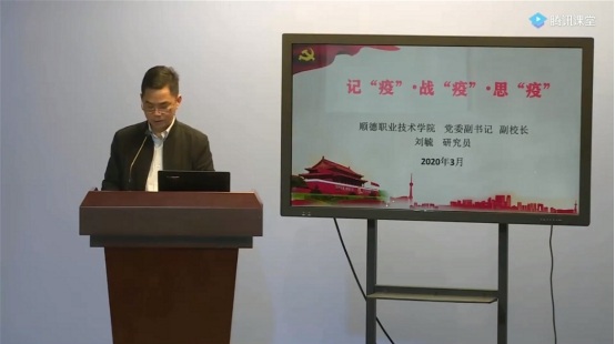本次思政课题目为《记“疫”·战“疫”·思“疫”》,由学校党委副书记、副校长刘毓主讲。刘书记用翔实的数据和生动的案例,为我们勾勒出了一段段党和人民与病毒抗争的深刻记“疫”,使我们进一步了解了疫情发生的始末、进展和影响;以宽阔的视野和深厚的理论功底,为我们分析了在这场突如其来的实战考试中,以习近平同志为核心的党中央带领全国各族人民从容“疫”考、自信战“疫”、科学战“疫”的宏大布局,让我们看到了打赢这场疫情阻击战的信心与决心;用身边的师生感人事迹,为我们诠释了责任与担当,让我们作为顺职人感到骄傲与自豪。
