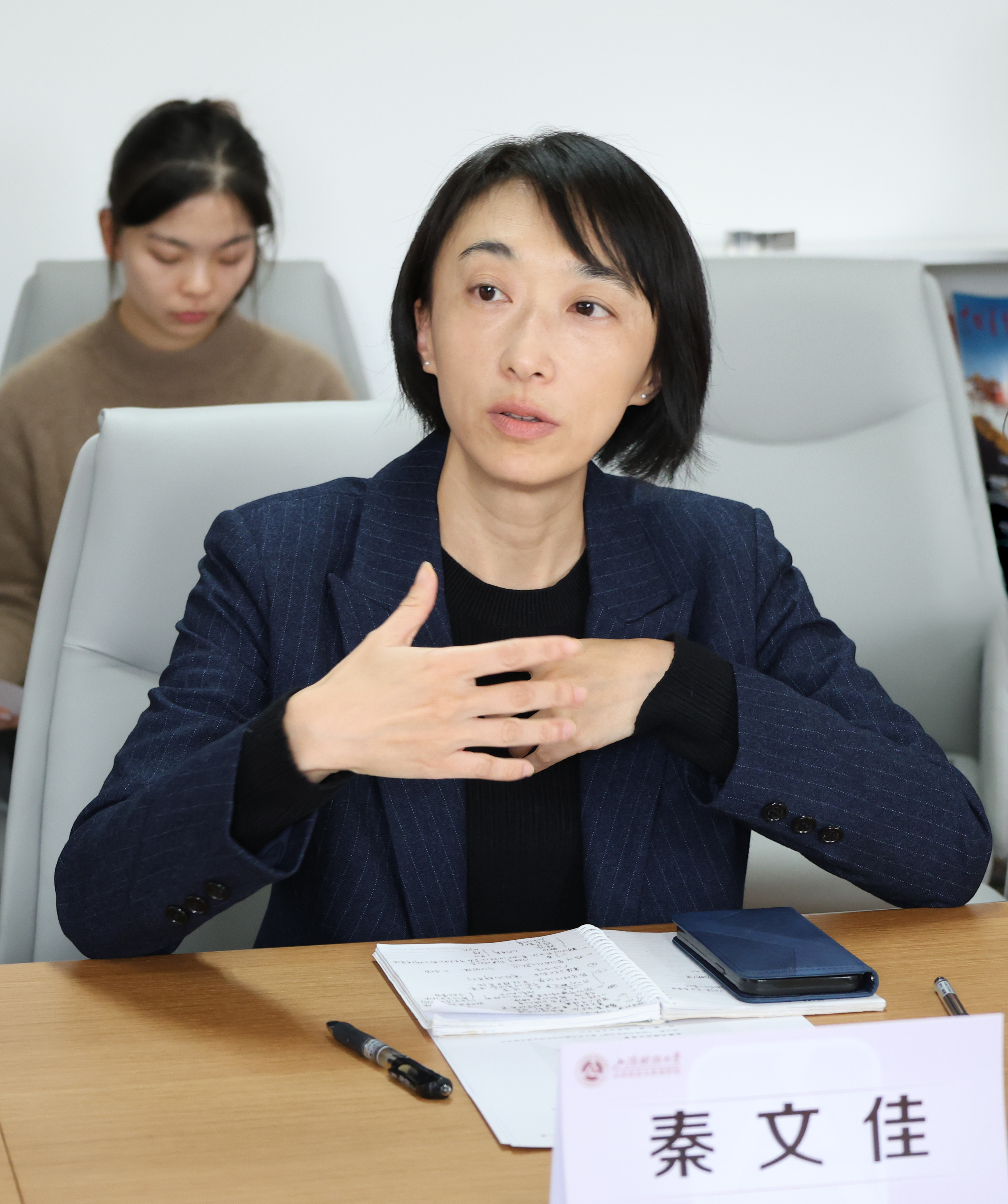 秦文佳书记首先代表学院致辞,对上海第一财经传媒有限公司一行的到来表示热烈欢迎,她回顾了双方近年来校企合作的实践探索和成果,用聚焦事业发展、聚焦人才培养、聚焦财经优势、聚焦文化融合表达了对双方共建的期待,希望双方通过校媒合作、党建团建联建等形式,推动双方在“学术研究+财经媒体”等方面开展更深层次、更多领域的交流,形成良性互动、合作共赢的良好格局。
