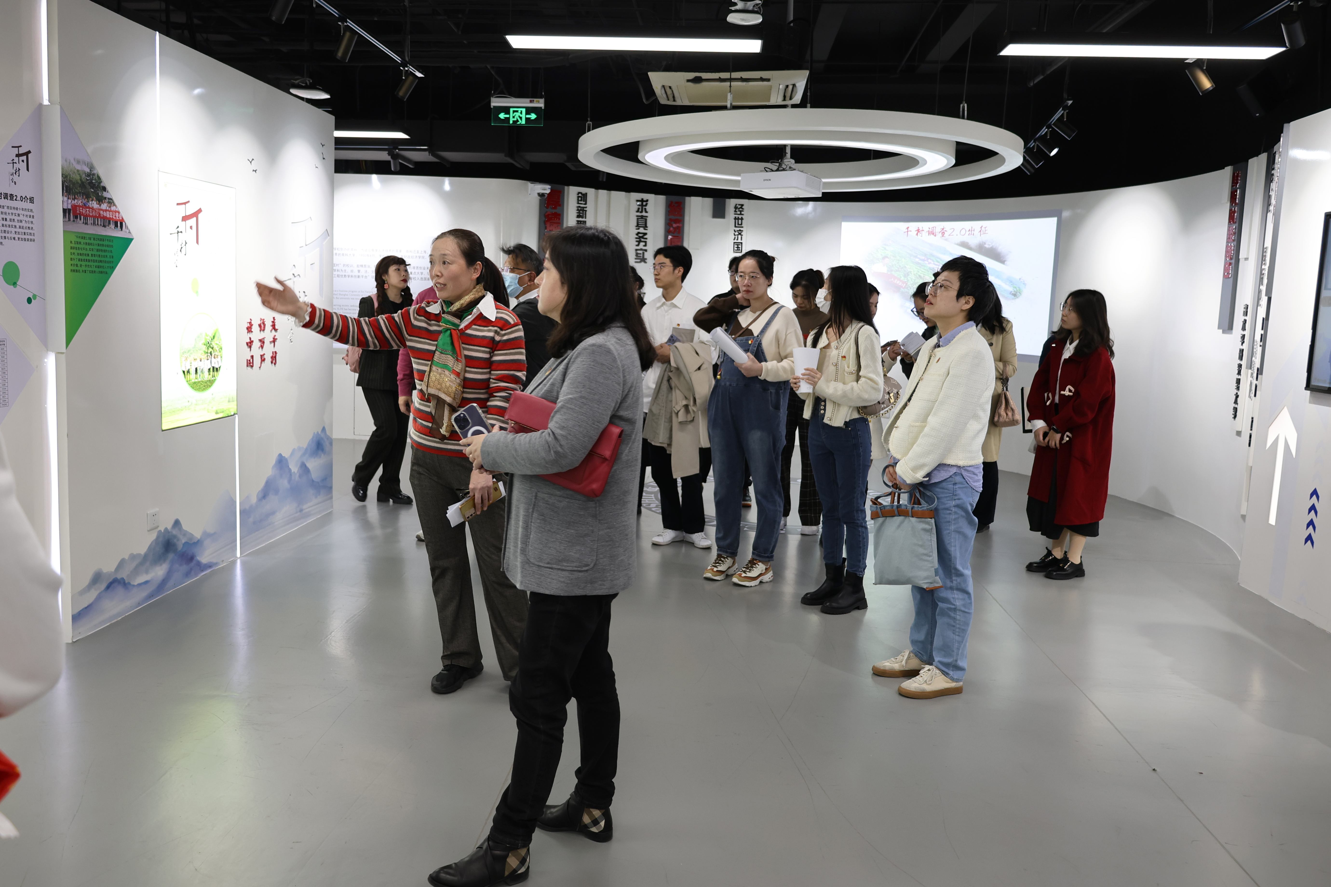 党建团建联建座谈结束后,大家一同前往图书馆参观了学术展示·共享空间。该空间通过实物、展板、视屏等多种方式,集中展示了学校的育人科研精品力作和学术信息资源。其中“千村调查”项目是学校加强国情教育、社会实践、劳动教育、科学研究、学科建设“五位一体”人才培养模式的品牌项目。参观后,双方在科研实践、社会调研等方面将搭建更加广泛的合作交流平台,让校企合作的“同心圆”越画越大。